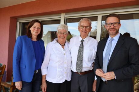 WeiterlesenLandrat Thorsten Stolz und Bürgermeisterin Sylvia Braun gratulieren Rosel und Günter Kutscher zur Diamantenen Hochzeit
