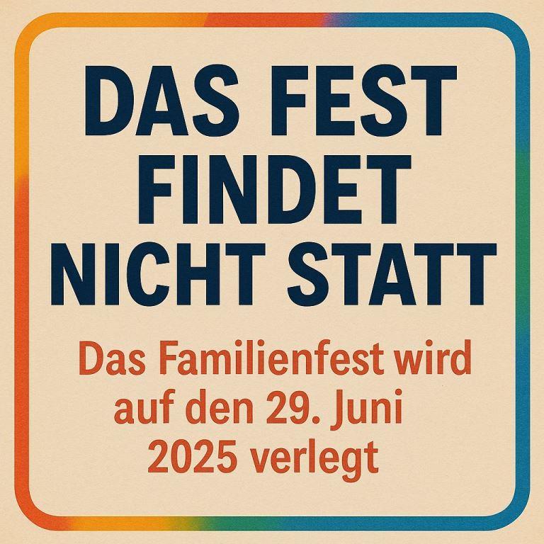 Familienfest „ZUSAMMEN LEBEN, ZUSAMMEN WACHSEN“ im Limespark Erlensee wetterbedingt abgesagt 15. Juni 2025 Erlensee Teilen via f w
