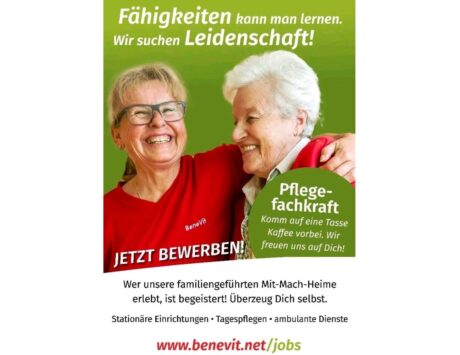 Jetzt ist der richtige Moment für Veränderung. Starte 2026 mit einer Aufgabe, die zählt – im BeneVit Pflegeheim. Wir freuen uns auf Menschen, die etwas bewegen wollen.